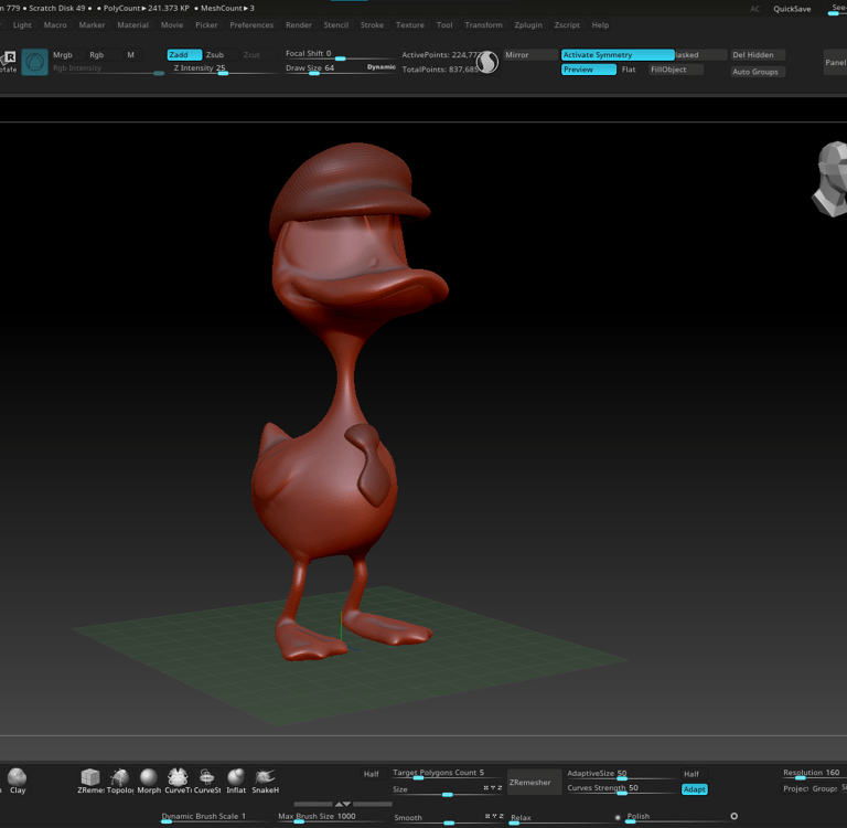 Veremos como realizar 2 practicas de escultura digital en 3D donde crearemos un Patito que nos permitirá conocer el manejo del programa Zbrush y los pasos esenciales para su correcto uso.